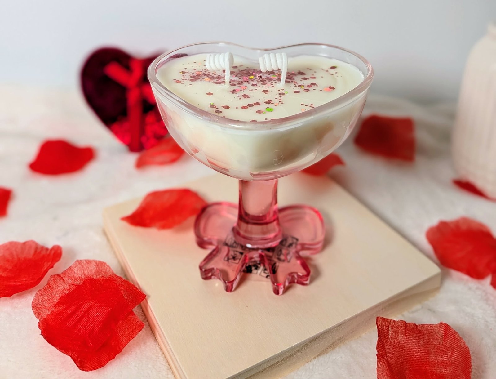 Une bougie parfumée Amour dans le Pré, subtile et raffinée, idéale pour illuminer un moment romantique à la lueur de la flamme.