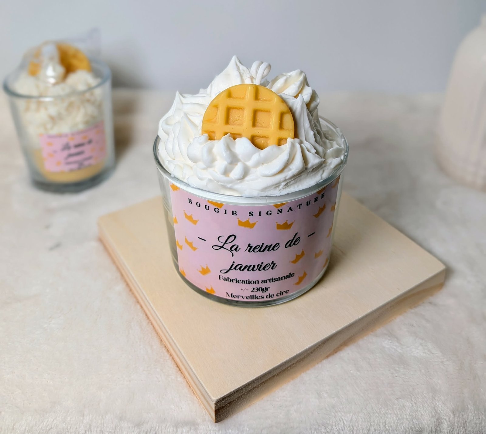 Une bougie gourmande galette des rois avec bijou caché, où la douceur rencontre la surprise dans une création unique de janvier.