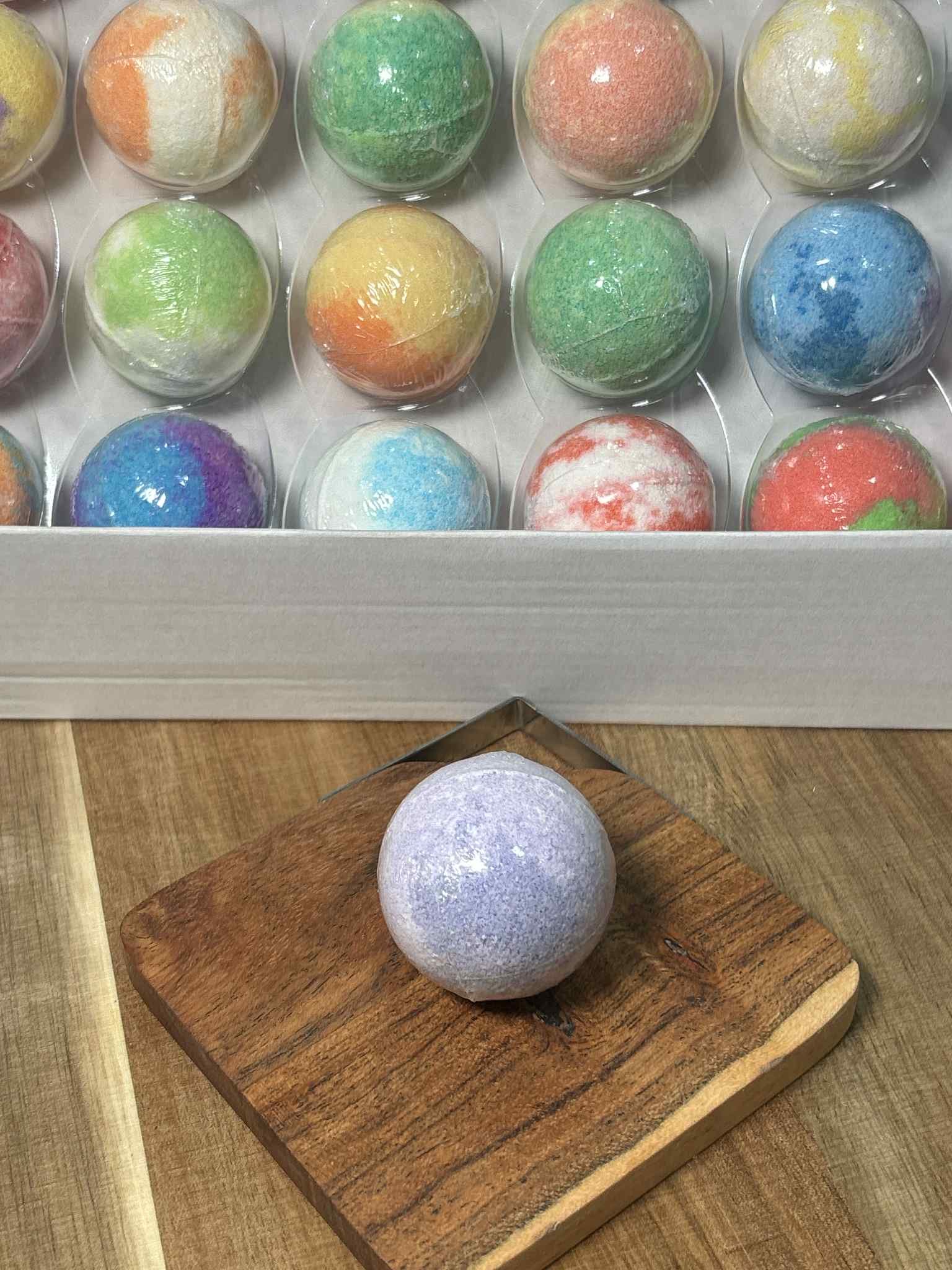 Plongez dans un bain apaisant avec la bombe de bain Lavande 45 g, qui effervesce et libère un parfum relaxant pour un moment de pure sérénité.