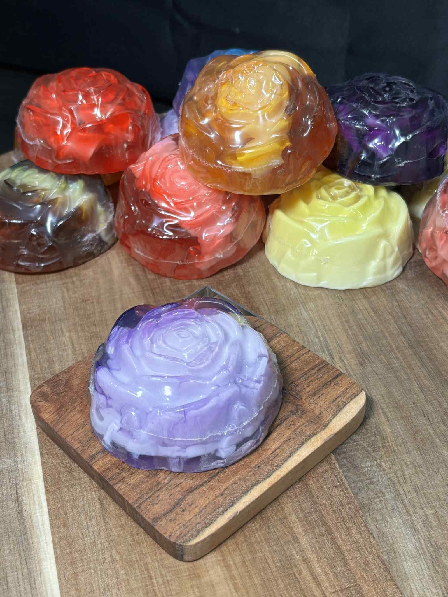 Savon à la glycérine au parfum sucré de myrtille et de mûre, pour une peau douce et délicieusement parfumée.
